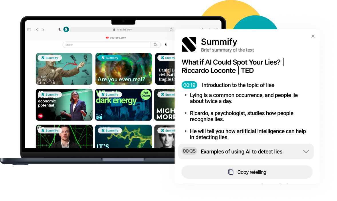 Extract the main ideas from YouTube videos and web pages in seconds.